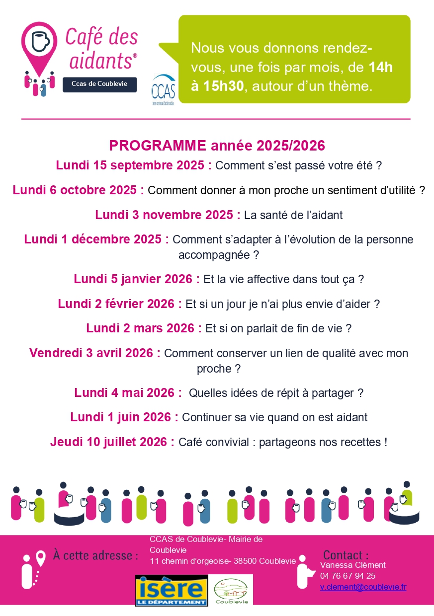 Chaque mois, de 14h à 15h30, rendez-vous en mairie pour échanger avec des professionnels et d'autres aidants sur des thèmes spécifiques.