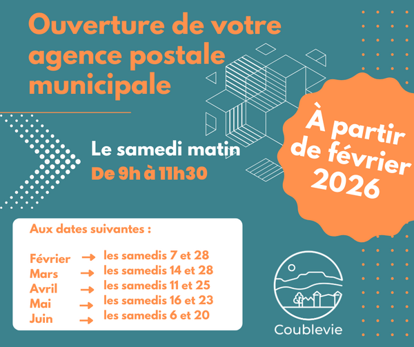 Ouverture de l'agence postale les samedis (fév-juin 2026)