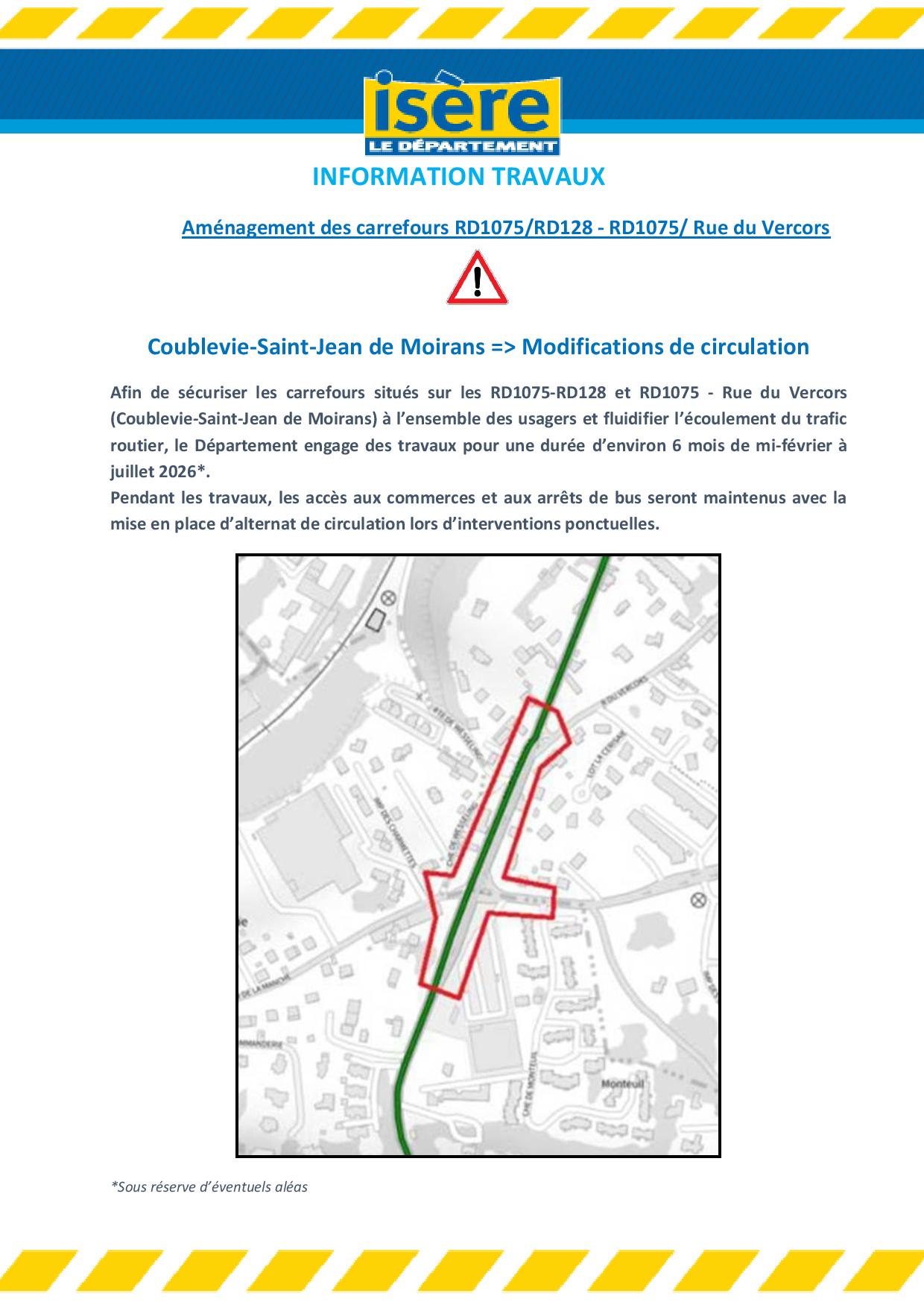 Le Département vous informe : Aménagement des carrefours RD1075/RD128 - RD1075/ Rue du Vercors
