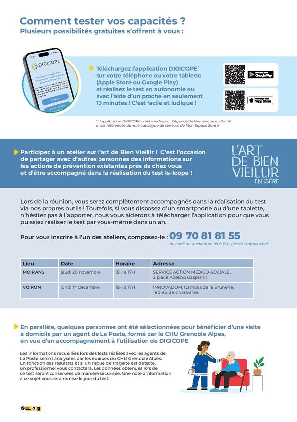 📱 Grâce à l’application DIGICOPE, validée par l’Agence du Numérique en Santé, vous êtes accompagné pour rester en forme, en autonomie ou avec l’aide de professionnels.