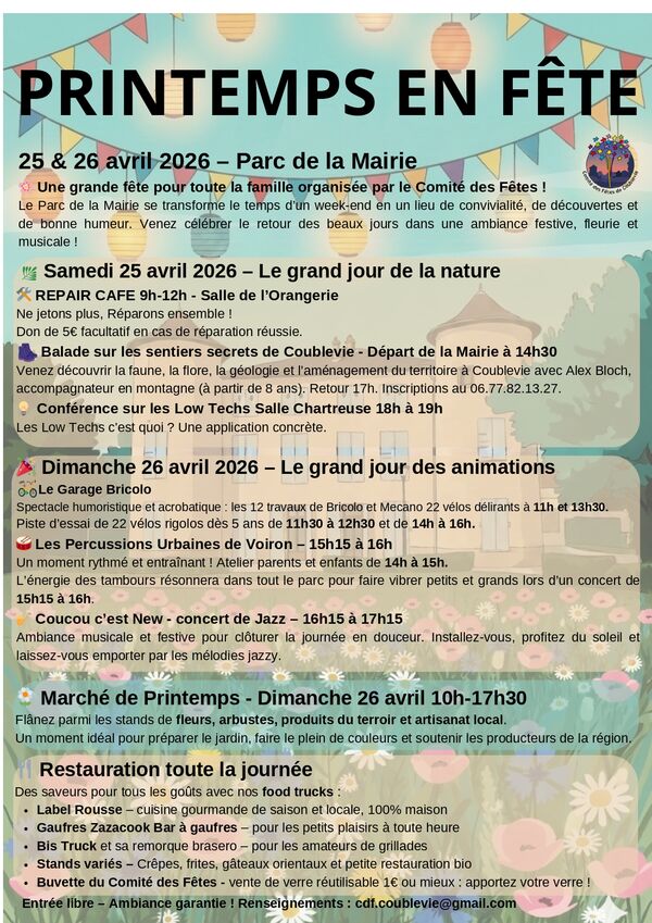 Le samedi 25 avril et le dimanche 26 avril 2026, venez vous amuser et célébrer le retour des beaux jours dans une ambiance festive, fleurie et musicale !