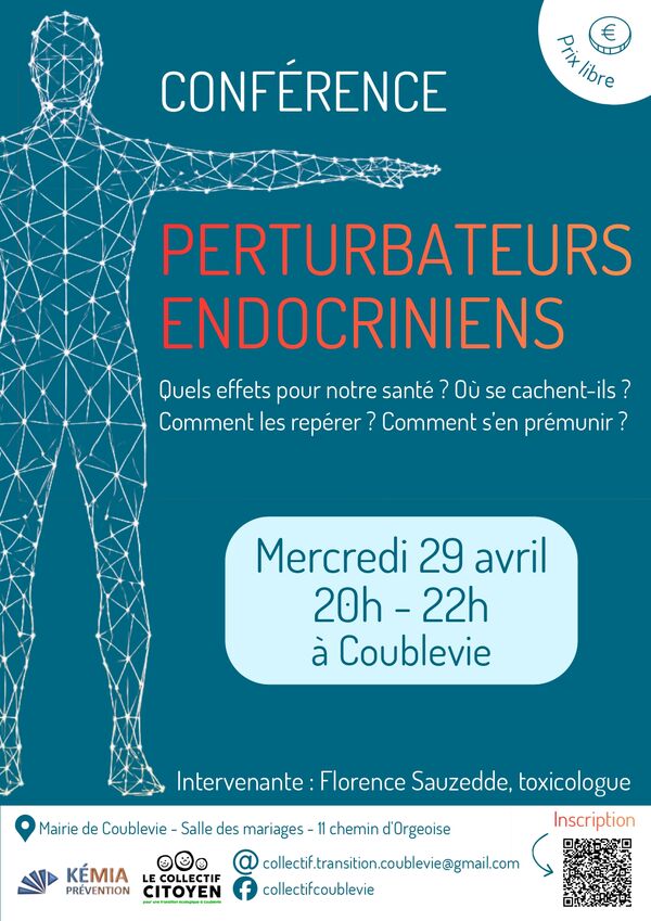 Lien pour s'inscrire : https://www.helloasso.com/associations/collectif-citoyen-pour-une-transition-ecologique-a-coublevie/evenements/conference-perturbateurs-endocriniens